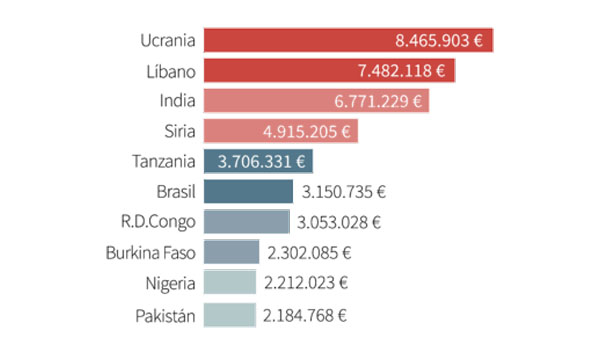 10,2 millones de euros se destinaron en 2024 a aliviar las necesidades urgentes de parte de estos hermanos en Siria, Líbano, Gaza, Ucrania, Sudán del Sur, Nigeria, Burkina Faso.